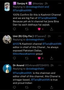 Soon after this tweet, he confirmed that he has learnt the channel was Kashmir based. His confirmation was against tweet which reads: “Yes. You are right. ANN, is a commercial television news network in INDIA run by ‘South Asia News Network’ Pvt. Ltd. Corp. ANN is the broadcast supplier of news program to all ANN-affiliated stations. It also operates a 24-hour cable Tv news channel.”