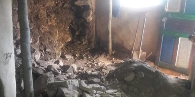 Teetwal, April 3: Two houses suffered massive damage due to landslide at Teetwal, Karnah in north Kashmir’s Kupwara district.
