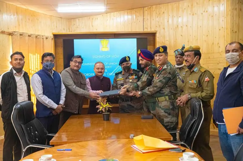 LEH: A historic Memorandum of Understanding (MoU) was signed today between the UT Administration and Border Roads Organization (BRO) for upgradation and improvement of the road network of Ladakh, at the UT Secretariat in presence of Principal Secretary Dr Pawan Kotwal and Lt General Rajeev Chaudhary.