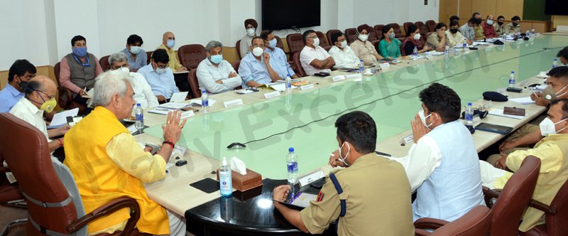 JAMMU: Lieutenant Governor, Manoj Sinha chaired a meeting with all Deputy Commissioners and Senior Superintendents of Police of the Jammu division to review the developmental scenario, law and order situation, besides assessing the COVID containment and mitigation efforts across the districts, at the Civil Secretariat here today.