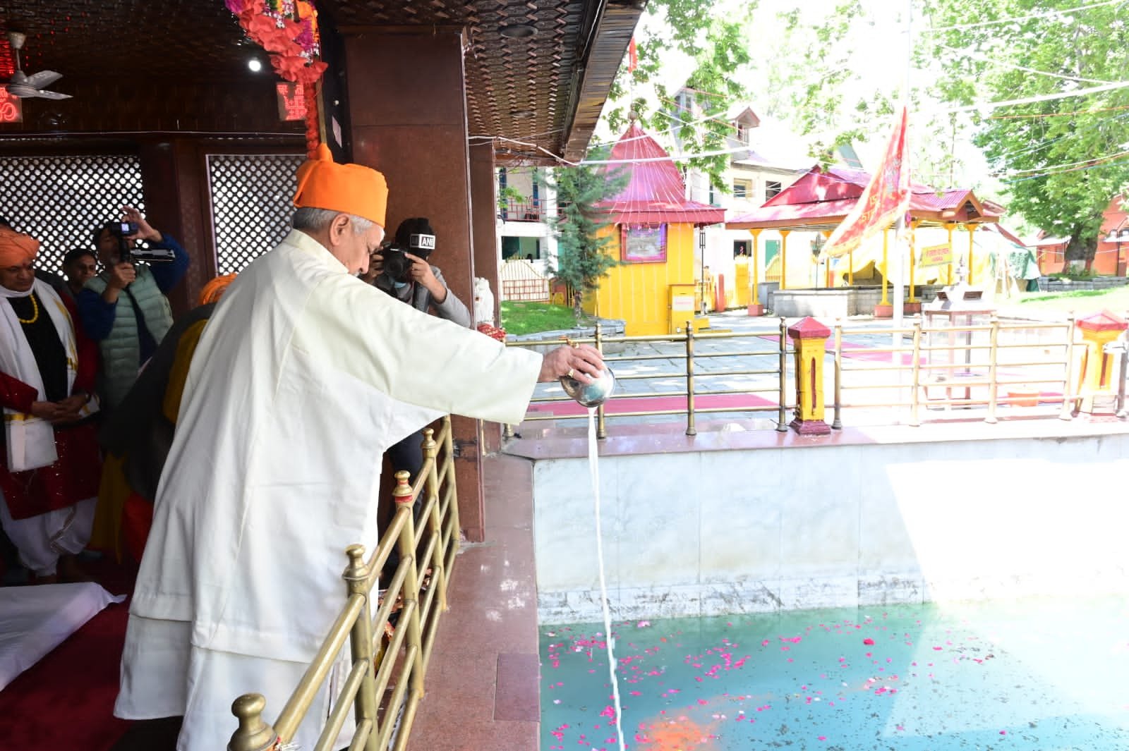 The Lt Government was welcomed by members of Kashmiri Pandit community and was presented with traditional Pheran by them. The Lt Governor offered his prayers. Thereafter, he reviewed the arrangements being made for the auspicious occasion of Jyeshtha Ashtami.