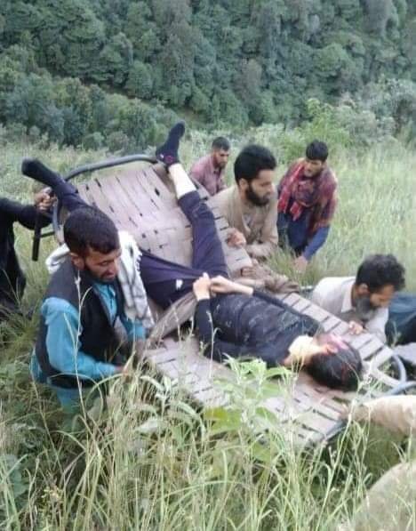 Official sources told GNS that an Alto (JK02AB-2403) in which four members of a family were going on met with the accident near Shila Shajroo Mahore, resulting in the death of Sakeena Begum (42) and her son Imityaz Ahmed (20). Begum’s husband Abdul Majeed and their daughter Nazmeen Kousar (15), residents of Jamaslan, were injured and shifted to Community Health Centre Mahore by rescuers comprising locals and police.