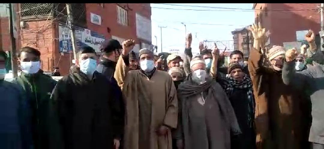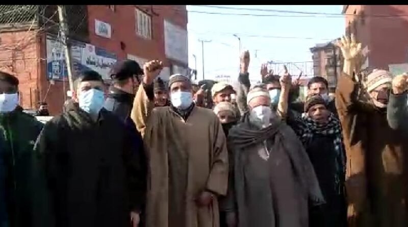 Locals from Bran village of Shangus Tehsil of Southern Anantnag district assembled here in Press Enclave Srinagar and staged a protest against what they said ‘land grabbing’.