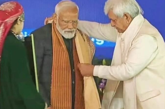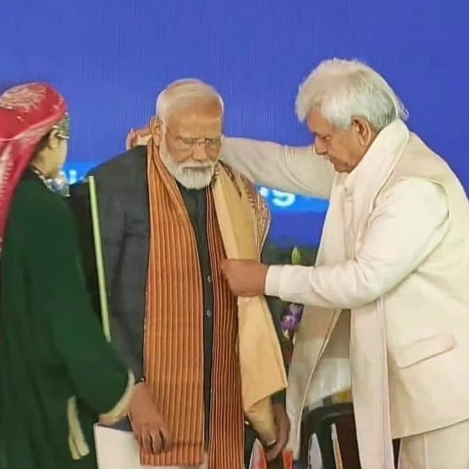 Addressing the massive gathering at Bakshi Stadium, Srinagar, in presence of Prime Minister Modi, LG Sinha, as per news agency—Kashmir News Observer (KNO), said that gone are the days when Kashmir was known for separatism, terrorism, and bloodshed. “It was only possible because of the personal efforts of PM Modi that Kashmir was turned into an abode of peace as it was known for being the land of Sufis and Reshis,” LG Sinha thundered from the stage.