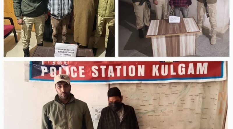 A police party of Police Station Chandoosa headed by SHO PS Chandoosa, at a checkpoint established at Galibal Chandoosa, intercepted two persons identified as Abdul Qayoom Lone son of Ab Rehman resident of Shirpora & Mudasir Ahmad Dar son of Ab Rashid resident of Heewan Sheeri. During search, 36 grams of Charas was recovered from their possession. They have been arrested and shifted to PS Chandoosa where they remain in custody.