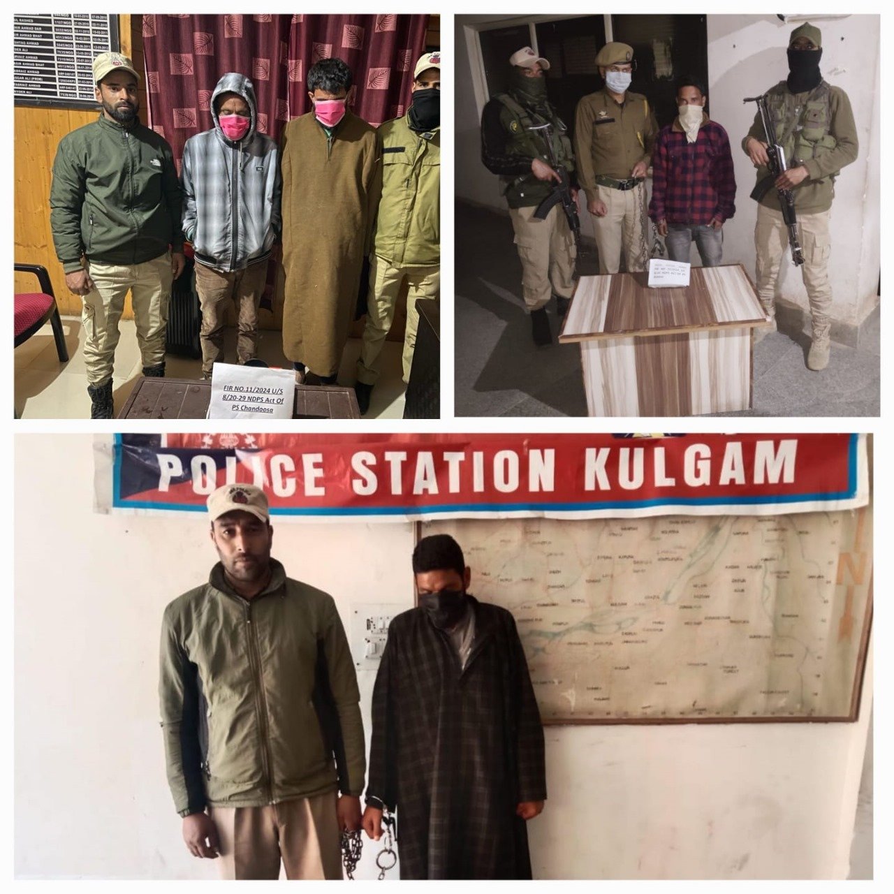 April 12: Continuing its efforts to eradicate the menace of drugs from the society, Police have arrested 04 drug peddlers in Baramulla, Kulgam & Spore and recovered contraband substances from their possession.