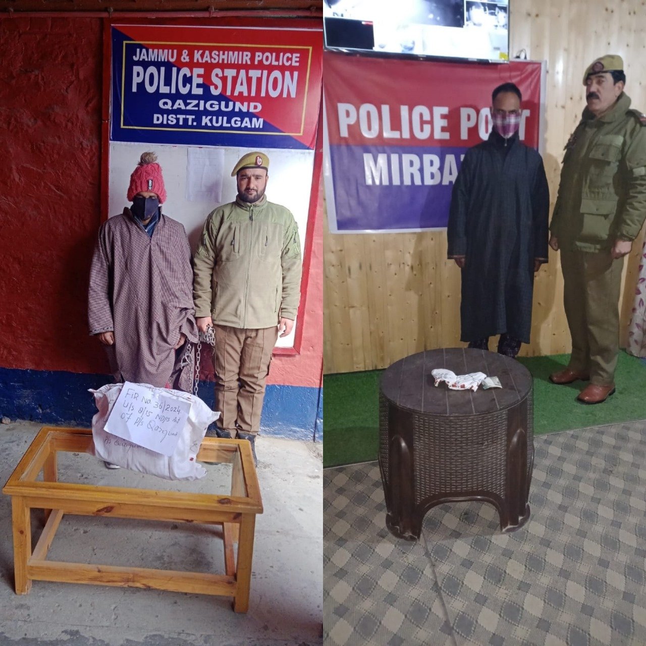 February 03: Continuing its unwavering efforts to eradicate the menace of drugs from the society, Police have arrested 02 drug peddlers in Kulgam and recovered contraband substances from their possession.