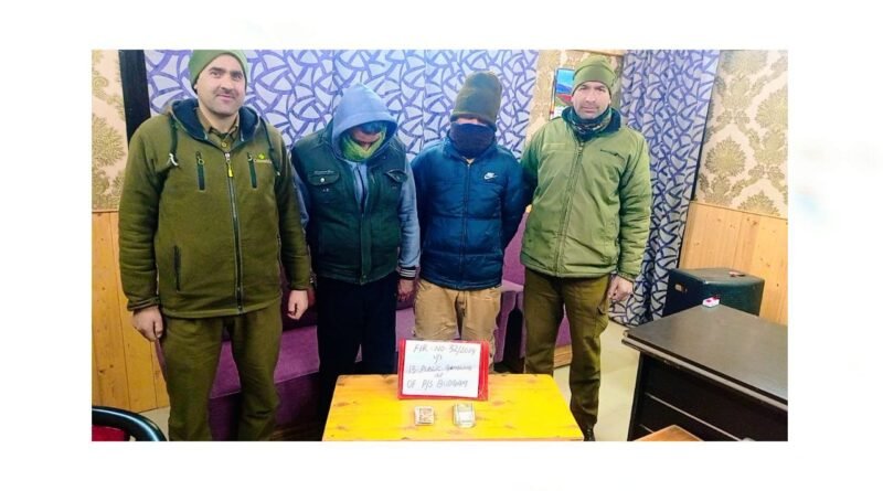 Acting on a specific information about gambling activities near Salsabeel School Humhama, a police party of PP Humhama headed by IC PP Humhama raided the gambling site and arrested two gamblers. They have been identified as Firdous Ali Pandit son of Gh Hassan Pandit resident of Ustad Mohalla Budgam and Farooq Ahmed Dar son of Mohd Azim Dar resident of Banpora Humhama.