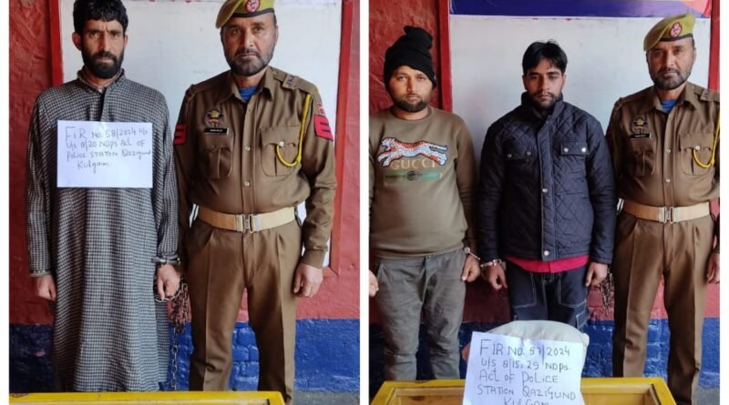 Police arrests 03 drug peddlers in Kulgam; Contraband substances recovered