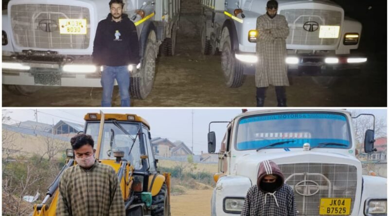 November 21: Acting tough against the persons involved in illegal extraction and transportation of minerals, Police have arrested 04 persons and seized 04 vehicles in Budgam.