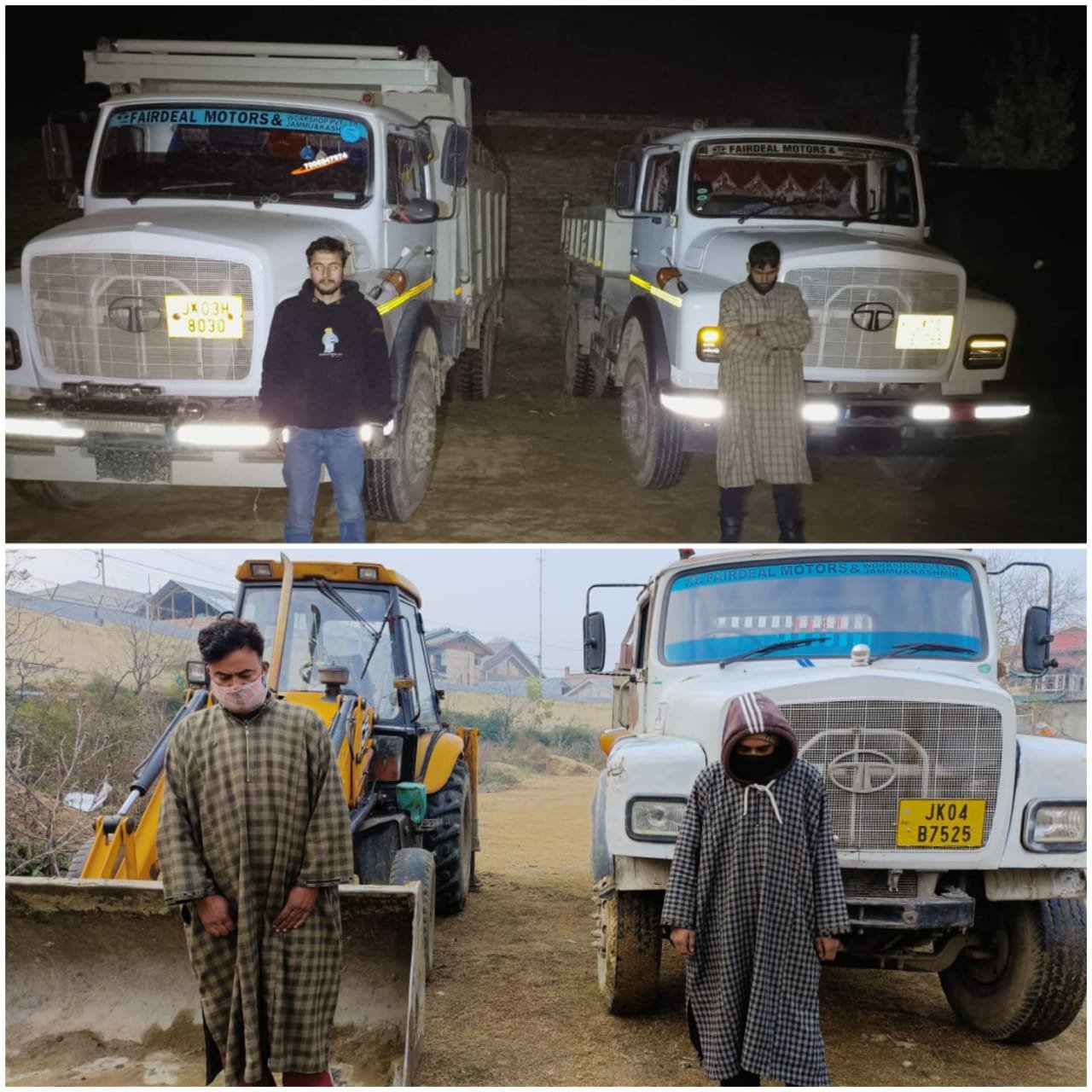 A police party of Police Station Chadoora during night patrolling seized 04 vehicles (01 JCB Machine, 03 Tippers) and arrested 04 persons involved in illegal extraction and transportation of minerals from government land at two separate locations at Nowpora Chadoora and Magraypora Chadoora. The arrested persons have been identified as Javaid Ahmed Sheikh son of Ab Rasheed Sheikh & Bilal Ahmad Sheikh son of Gh Rasool Sheikh, both residents of Nowpora Chadoora, Umeed Ahmed Wani son of Mohd Ibrahim Wani resident of Pahroo Chadoora and Ajaz Ahmed Bhat son of Bashir Ahmed Bhat resident of Wanpora Chadoora.