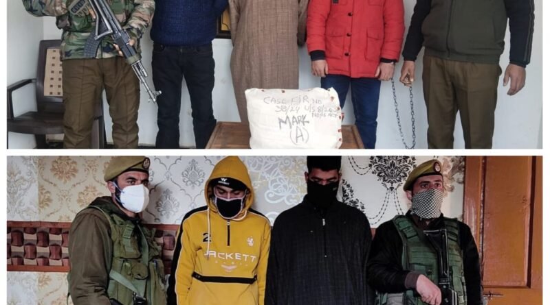 March 06: In continuation of its efforts to eradicate the menace of drugs from the society, Police have arrested 05 drug peddlers in Sopore & Ganderbal and recovered contraband/ psychotropic substances from their possession.