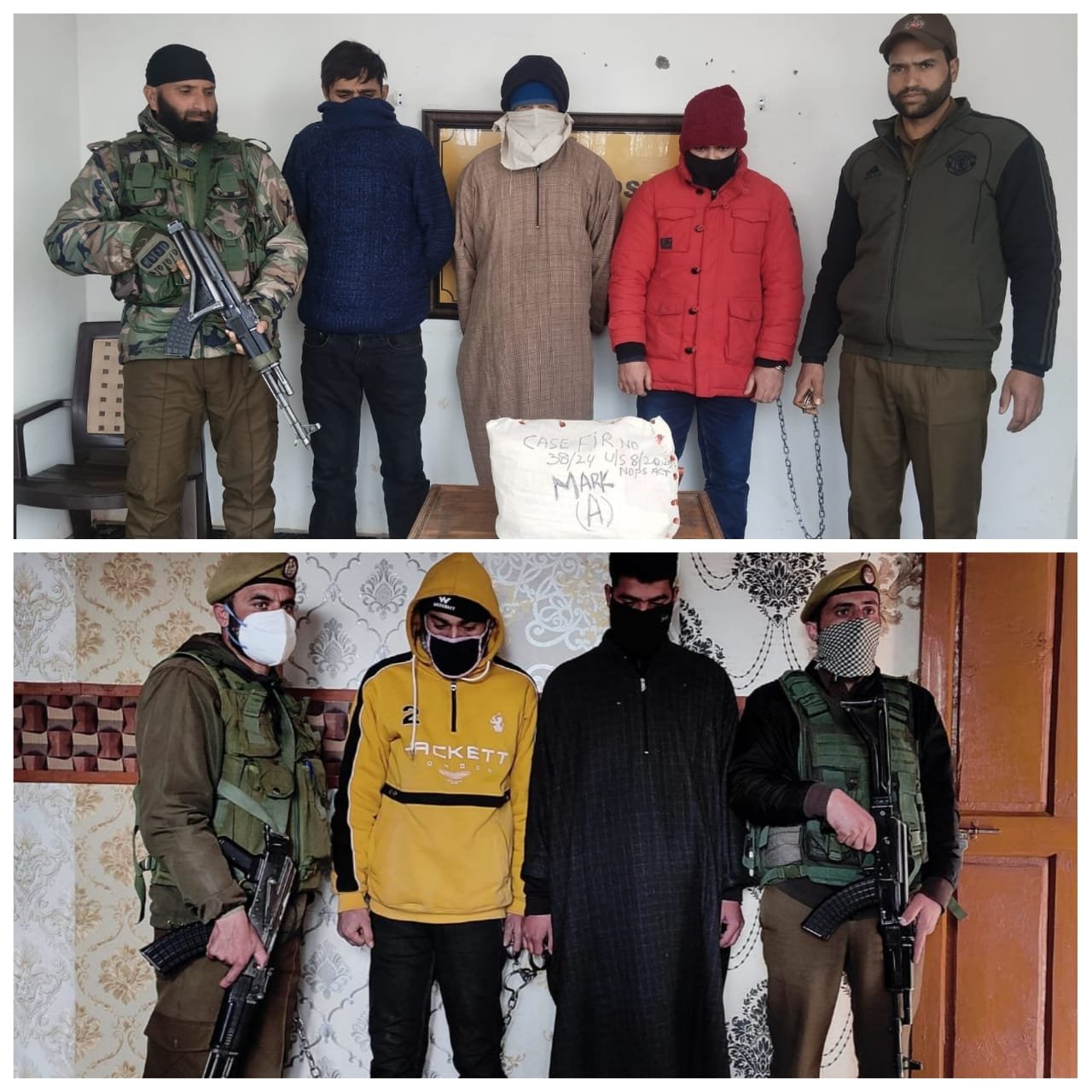 In Sopore, a police party headed by Incharge Police Post Watergam under the supervision of SDPO Rafiabad and SHO PS Dangiwacha at a checkpoint established at Hib Dangerpora Crossing, intercepted 02 persons who on seeing the police party tried to flee from the spot, but were apprehended tactfully. During search, 583 tablets of banned drugs have been recovered from their possession. They have been arrested and shifted to Police Station Dangiwacha where they remain in custody.