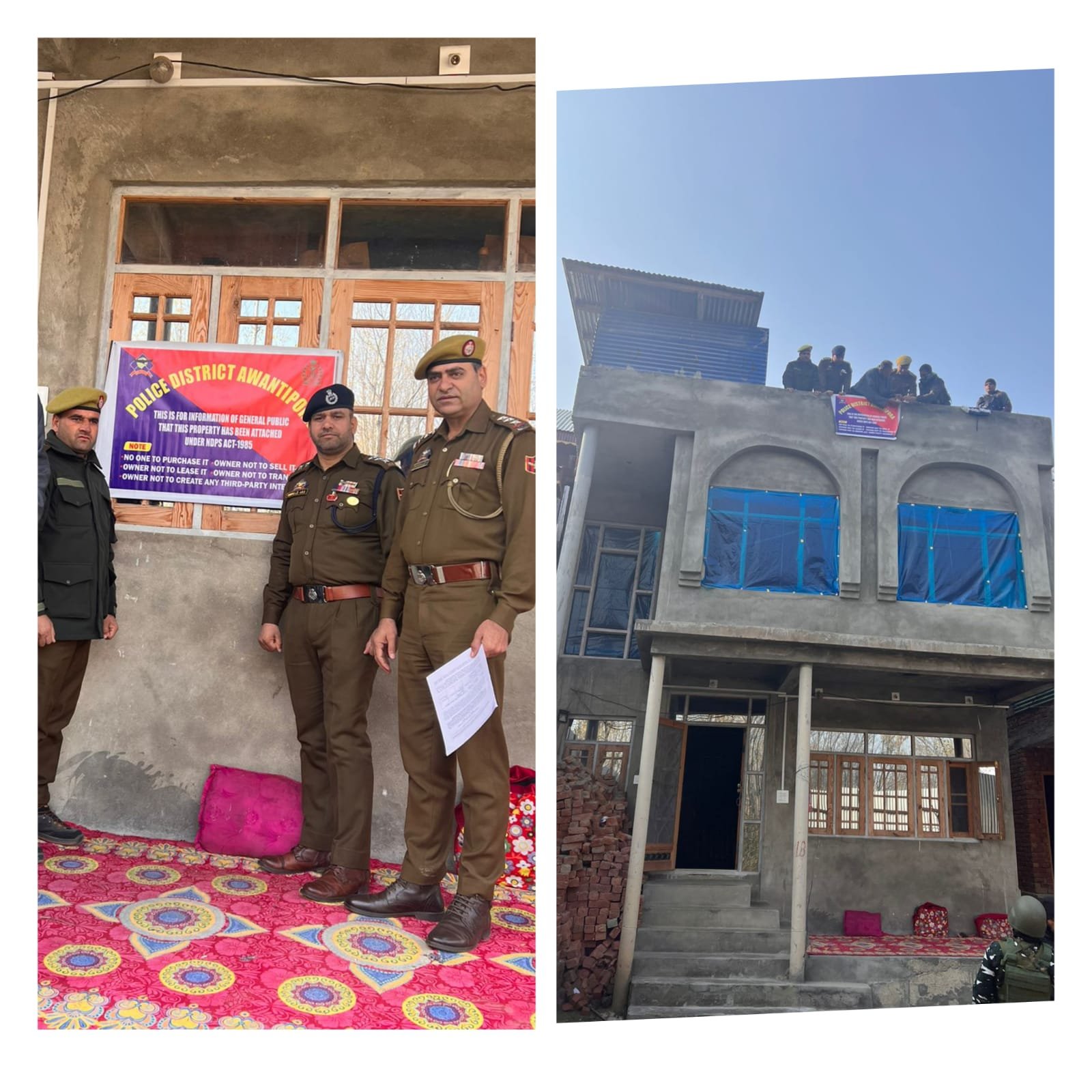This action reaffirms the commitment of Police to combat the drug menace. Local people of the area have hailed the initiative of Police with regard to the attachment of immoveable property, which has been raised/ used from illicit trafficking of narcotics by the drug peddlers in the Police District Awantipora.