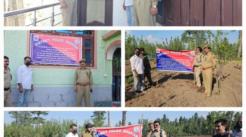 Police in Shopian under the supervision of SSP Shopian Ms Tanushree-IPS in collaboration with revenue authorities attached property of a self-styled terrorist commander Abid Ramzan Sheikh @ Saifullah @ Khalid son of Mohammad Ramzan Sheikh resident of Chotipora Shopian. The property includes 01 kanal & 10 marlas of land under survey No. 1165 situated at Chotipora Shopian and a partial residential house.