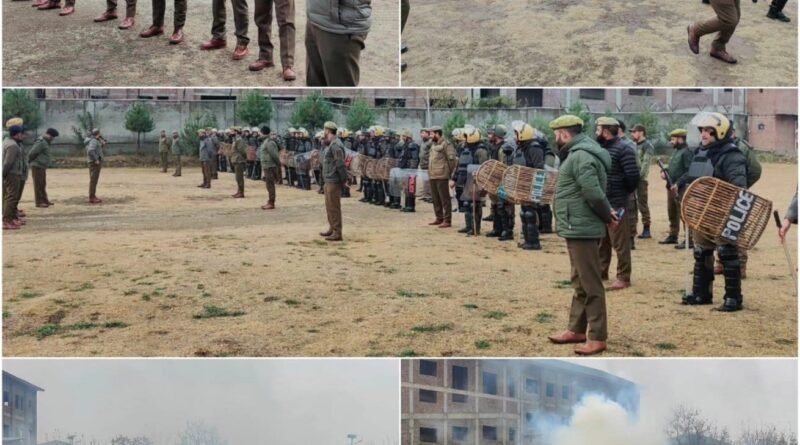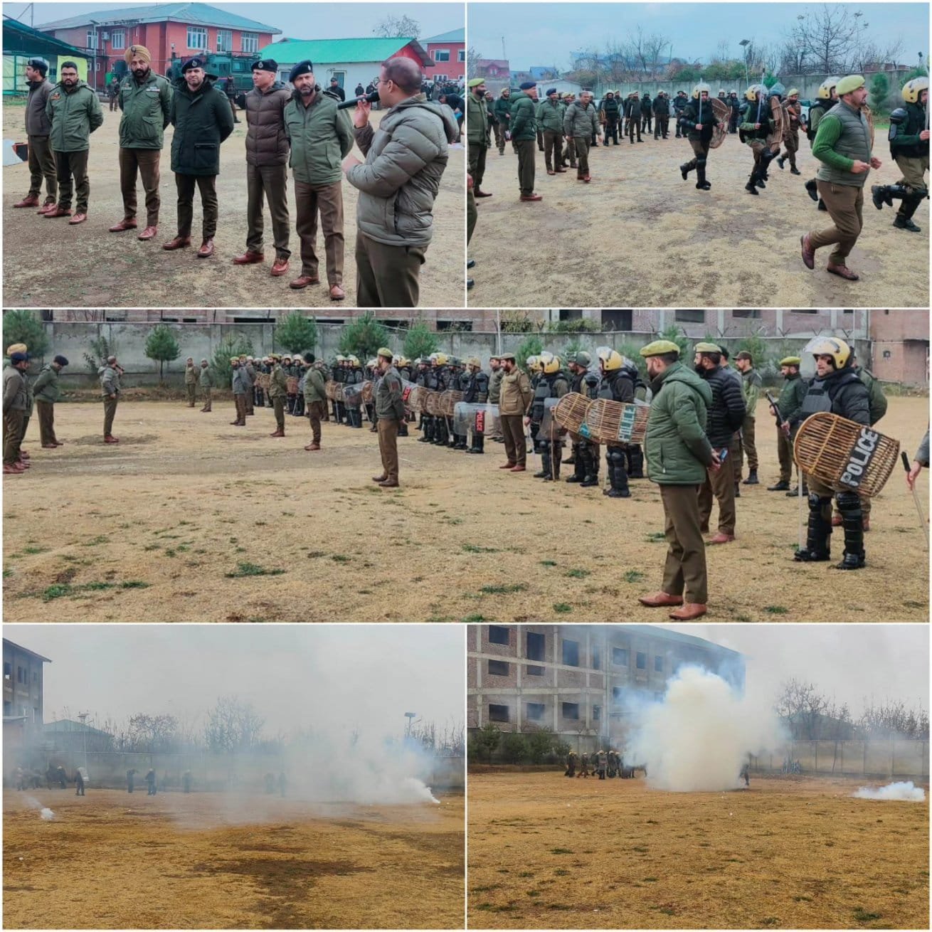 SRINAGAR (KIMS) — Jammu and Kashmir Police conducted a mock drill on law and order in Kulgam district on Saturday in which about 200 police personnel of different police QRTs deployed in all police establishments participated.