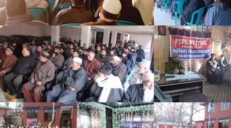 In Kulgam, PCPG (Police Community Partnership Group) meetings were held at Police Station Kulgam, Police Station Manzgam, Police Post Mirbazar & Police Post Frisal. These meetings were chaired by respective jurisdictional officers and were attended by respectable citizens including Market associations, Auqaf bodies, Chowkidars, Numberdars, Sarpanchs, Panchs, youth and other representatives of Sangus, Kaharwat, Town Kulgam, Manzgam, Frisal, Chinigam, Malpora, Mirbazar and other adjacent villages.