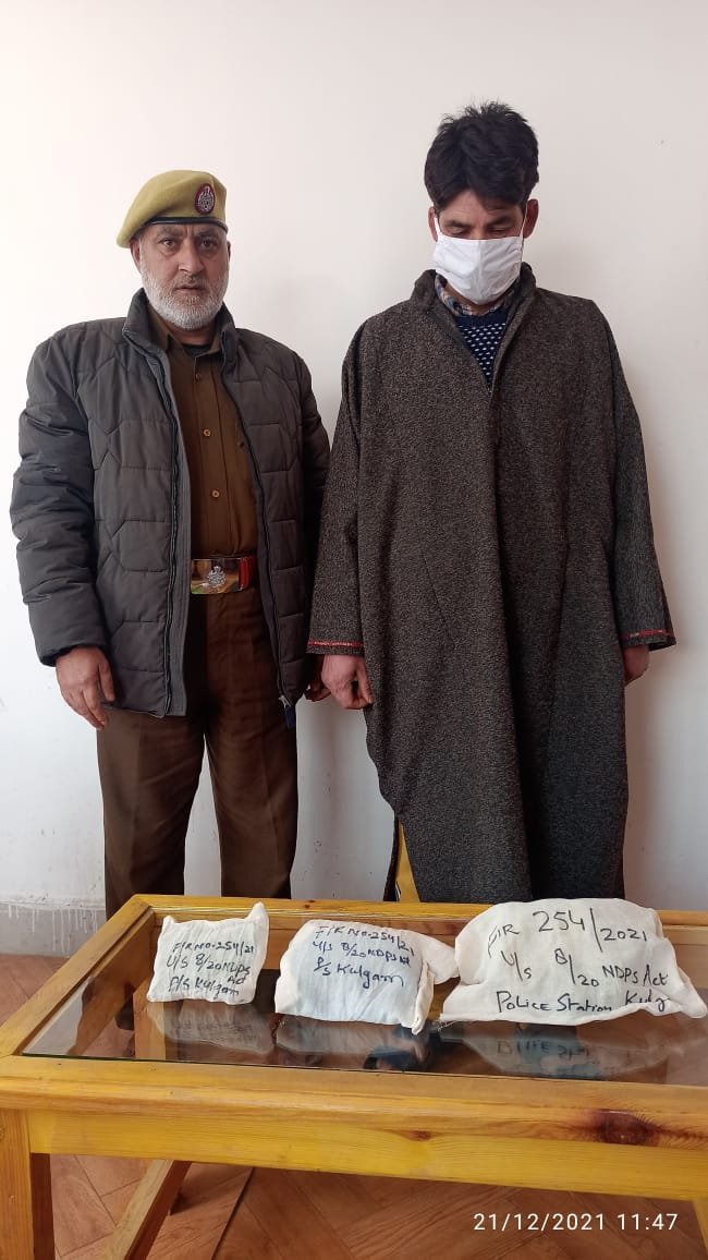 December 21: Police in Kulgam have arrested a drug peddler and recovered contraband substances from his possession.