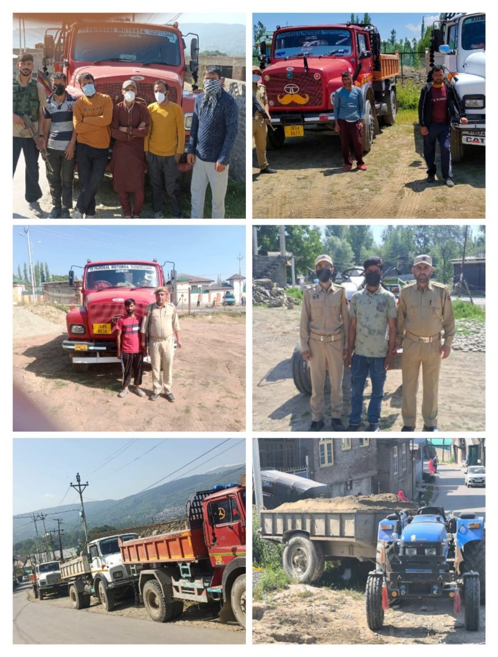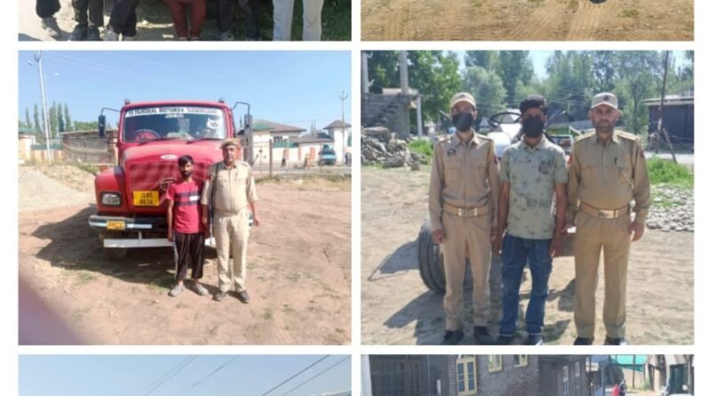 The police seized 07 Tippers, 02 Tractors & arrested 9 drivers identified as Waseem Ahmad Shah son of Ab Salam resident of Batpora Kunzer, Manzoor Ahmad Reshi son of Ab Ahad, Bashir Ahmad Reshi son of Gh Rasool, both residents of Pariswani, Showkat Ahmad Para son of Gh Mohd resident of Kachwa Muqam Chandoosa, Gh Hassan son of Ab Rahman, Bilal Ahmad Lone son of Wali Mohd, both residents of Jal-Sheeri, Zubair Ahmad Khan son of Ab Aziz resident of Drangbal, Azad Ahmad Itoo son of Gh Mohiuddin resident of Bharampora Watergam & Riyaz Ahmad Bhat son of Khazir Mohd resident of Ladoora.