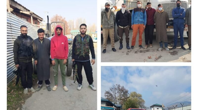 A Police party under the supervision of DySP Hqrs Baramulla assisted by SHO Baramulla & Incharge PP Delina seized 7 vehicles (5 Tippers, 2 Tractors) & arrested 7 drivers at Chakloo & Delina areas of Baramulla for their involvement in illegal extraction and transportation of minerals. The accused drivers have been identified as Mohd Rafiq Dar resident of Jalsheeri, Javaid Ahmad Malik resident of Drangbal, Mohd Rafiq Mir resident of Drangbal, Danish Ahmad Dar resident of Jalsheeri, Javaid Ahmad Lone resident of Jalsheeri, Basit Ahmad War resident of Delina & Mudasir Ahmad Lone resident of Darpora Delina.