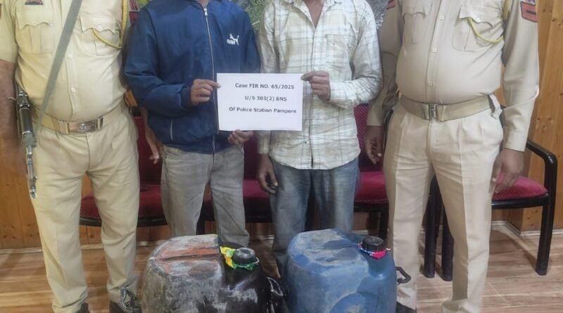 June 01: Police in Awantipora have solved a diesel theft case by arresting two accused persons involved in the commission of crime and have recovered stolen Diesel.