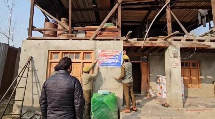 “A single-storey residential house along with 16 Marlas of land under Survey No. 354 in estate Nowpora Kalan Sopore of Mohd Subhan Khan, Son of Ab Satar Khan of Nowpora Kalan, Sopore was attached in case FIR No. 105/2024 of Police Station Sopore,” police said in a statement.