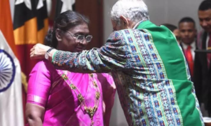 President Murmu was conferred the Grand-Collar of the Order of Timor-Leste, from her counterpart President Jose Ramos-Horta on Saturday, in recognition of her achievements in public service and dedication to education, social welfare and empowerment of women.