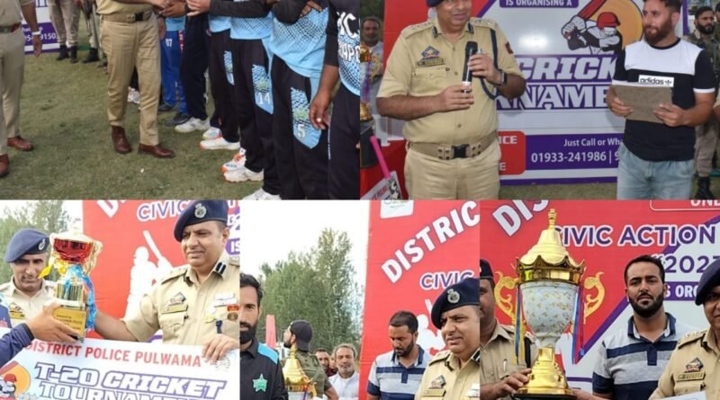 Later, SSP Pulwama presented trophies and medals to winner team and runner up team. The winning team and runner-up team were awarded with Trophies, Cash Prize of ₹20,000/- and ₹10,000/- respectively. Man of the Match award comprising of Cricket Bat & Trophy was given to Adil Rashid and Man of the series award containing Sports Kit & Trophy was given to Adil Rasool. SSP Pulwama thanked the players, spectators and the people who witnessed the event and made the event successful.