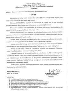 Srinagar: In the wake of reports that the Tablighi group” (Preachers group) to which Kashmir”s first Covid-19 victim belonged, had stayed and preached at some mosques of Pulwama district, the district administration on Thursday declared all such mosques as administrative quarantine centres.