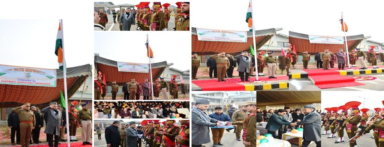 SRINAGAR, JANUARY 26: The celebrations for 75th Republic Day were today held across all the District Court Complexes (DCCs) of Kashmir Valley, during which the respective Principal District and Session Judges (PD&SJs) unfurled the national flag and took salute at the march-past.
