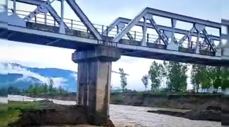 Handwara, Apr 20 : The intermittent rainfall for the past few days has caused damage to the vital bridge in Lagate area of Handwara, prompting authorities to restrict the public movement as a precautionary measure.