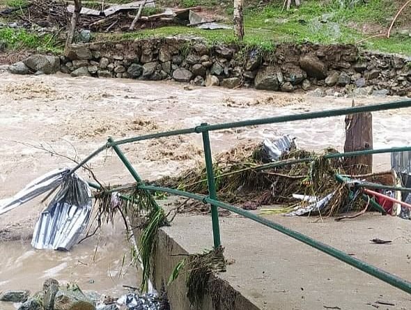 Bandipora, July 28: A residential house and a mosque were partially damaged while a footbridge was washed away after heavy rains coupled with a possible cloudburst in the upper reaches triggered flash flood in Aloosa area in north Kashmir’s Bandipora district on Wednesday, officials said.