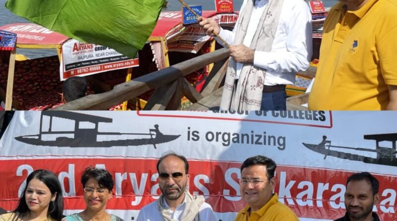 SRINAGAR, JUNE 11: The Sub-Divisional Magistrate East Srinagar, Murtaza Ahmad on Sunday flagged off the 2nd Shikara Race here in world famous Dal Lake in presence of Chairman, Aryans Group of Colleges, Rajpura, Dr. Anshu Kataria.