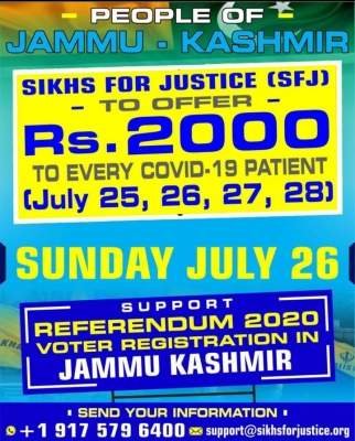 As per information, SFJ has offered financial support for four days between July 25 and July 28 — an attempt to gain sympathy from residents of Jammu and Kashmir for its illegal ‘Referendum 2020’ agenda.