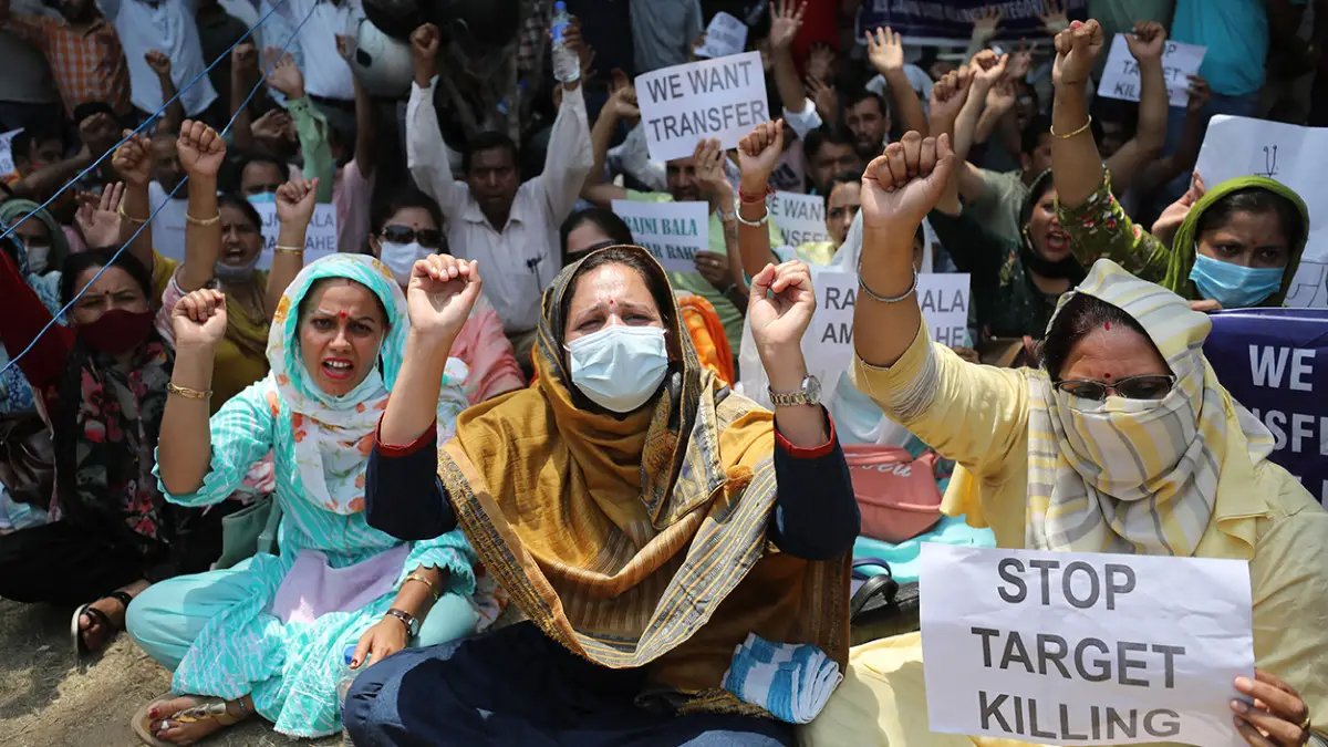 The protesters said that Kashmiri Pandits are becoming soft targets in the Valley and the government has failed to ensure their safety, while incidents of targeted killings are increasing day by day, causing fear psychosis among them.
