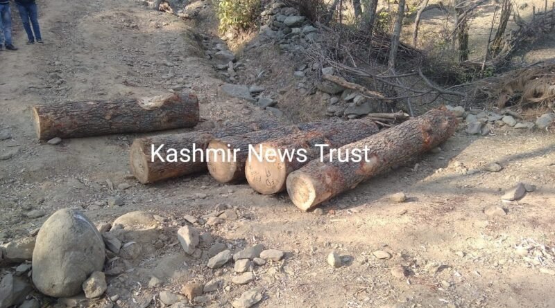 Ganderbal: The wanton plunder of green gold continues in various Compartments of Sindh Forest Range Kangan of Ganderbal district.