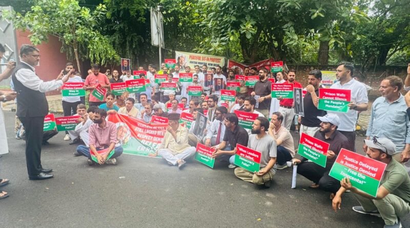 New Delhi, August 25: A sit-in protest was held at Jantar Mantar, New Delhi, to mark six years of incarceration of Baramulla Member of Parliament, Engineer Rashid.