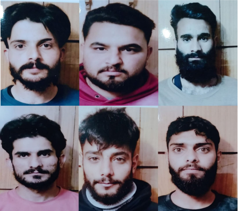 The accused have been identified as Umar Akbar Hajam, son of Mohammad Akbar, resident of Seelu; Salman Ahmed Shala, son of Mohammad Ramzan Shala, resident of Shalpora Sopore; Altaf Ahmed Sheikh, son of Mohammad Rajab Sheikh, resident of Panzipora Tarzoo; Mubashir Ahmed Gilkar, son of Fayaz Ahmed Gilkar, resident of Naseerabad Sopore; Muzammil Mushtaq Changa, son of Mushtaq Ahmed Changa, resident of Arampora Sopore and Majid Firdous Dar, son of Firdous Ahmed Dar, resident of Chinkipora Sopore.