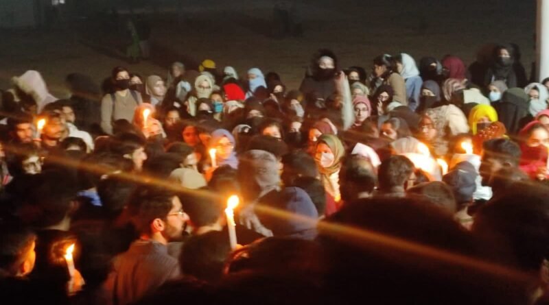 Sopore, Dec 02 : The students of Sher-e-Kashmir University of Agricultural Sciences and Technology (SKUAST), Wadura in north Kashmir’s Sopore on Friday evening staged a protest against the alleged sexual harassment to a girl student while the authorities have removed the accused from the post.