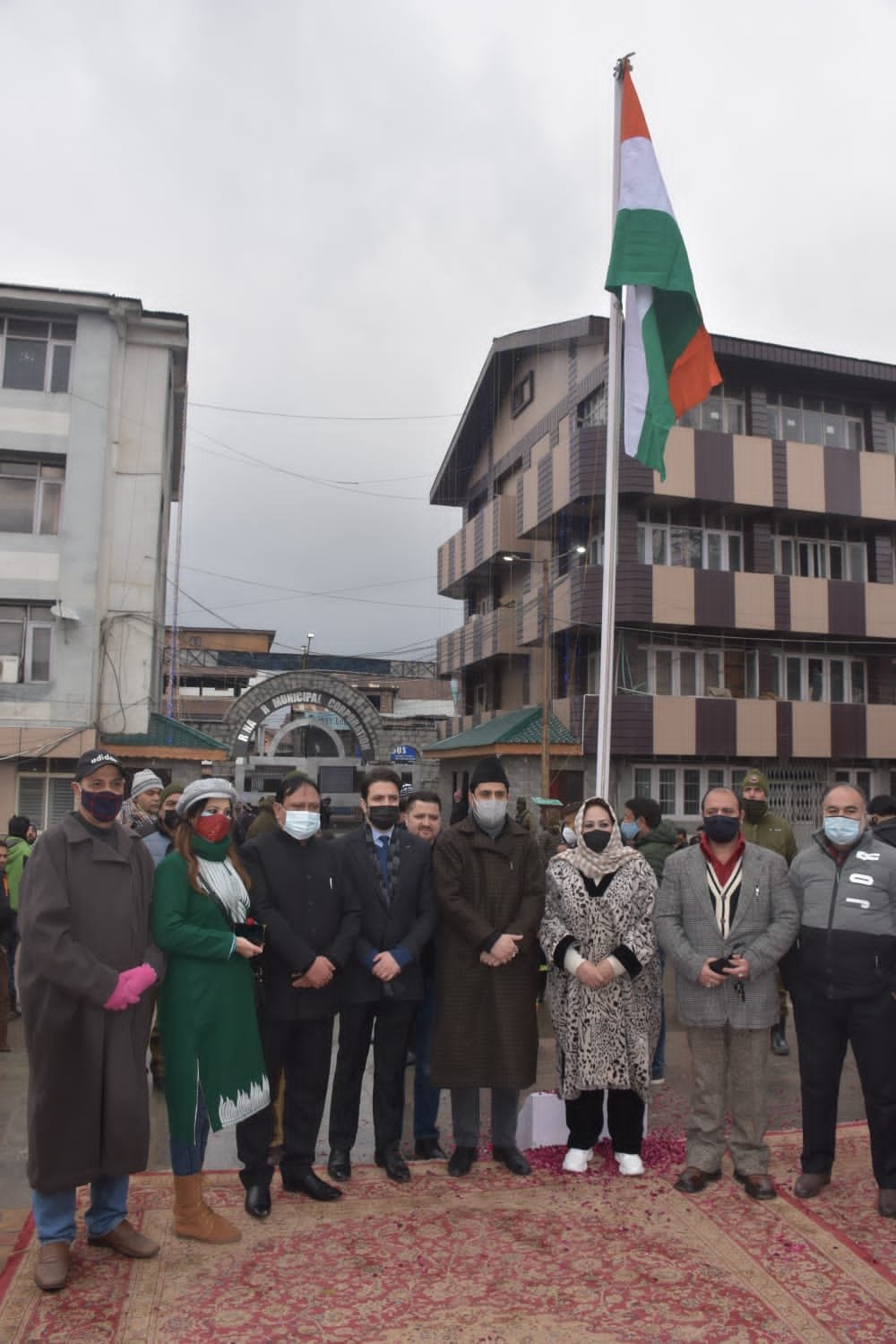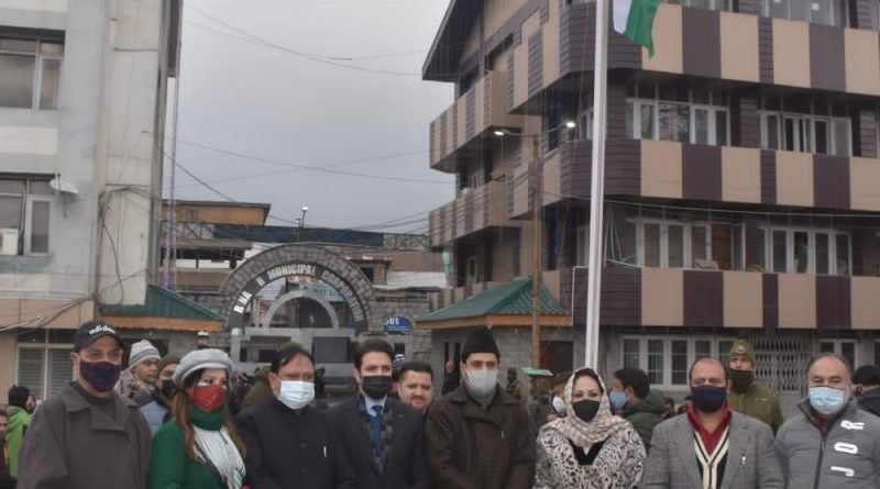 Mayor Srinagar Mr Junaid Azim Mattu in presence of Commissioner SMC Mr Athar Amir Khan today unfurled the National Flag on the occassion of 73rd Republic Day at SMC central Office Karna Nagar.