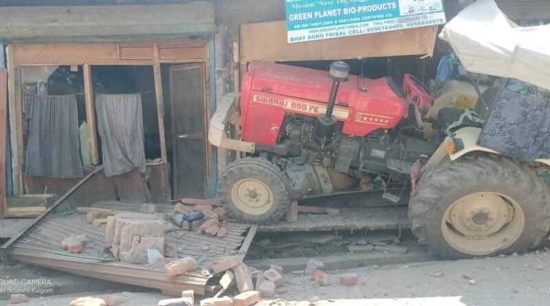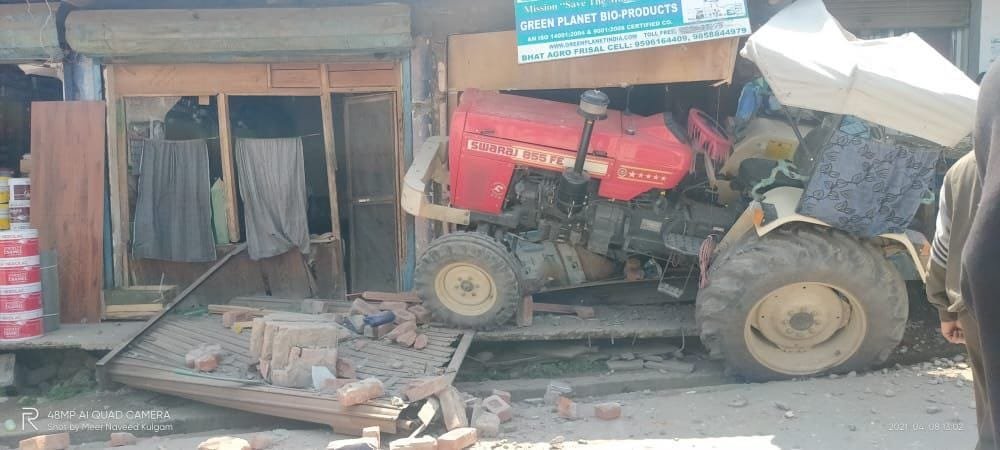 Speedy tractor crashes into two shops in Kulgam, shop owner injured