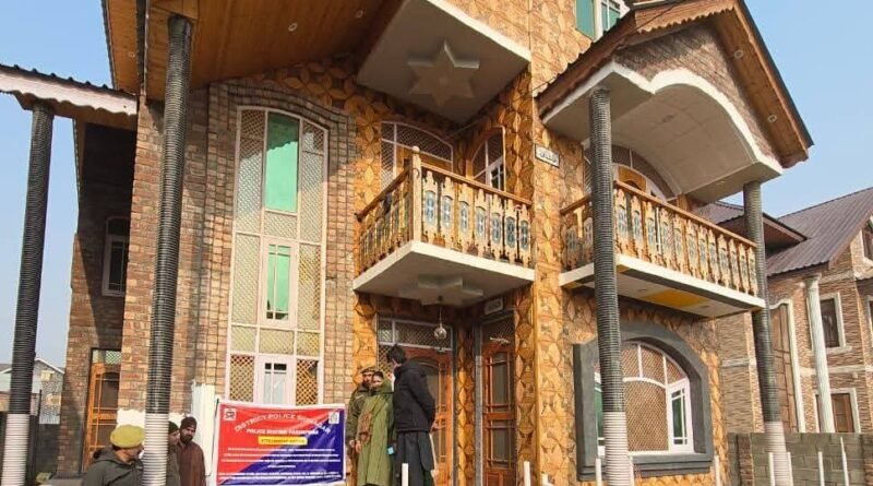 SRINAGAR (KIMS) — Police on Wednesday attached a three-storeyed residential house along with one kanal of land, valued at around Rs 2 crore in the Shaltang area of Srinagar under the NDPS Act as part of its action against the drug menace.