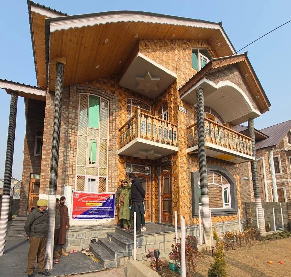 Police said the property is in the possession of Fayaz Ahmad Bhat, son of Ghulam Mohd Bhat of Shaltang, the father of notorious drug peddler Manzoor Ahmad Bhat of Shaltang, who is involved in FIR No. 98/2025 under sections 8/22 and 29 of the NDPS Act at Police Station Parimpora.