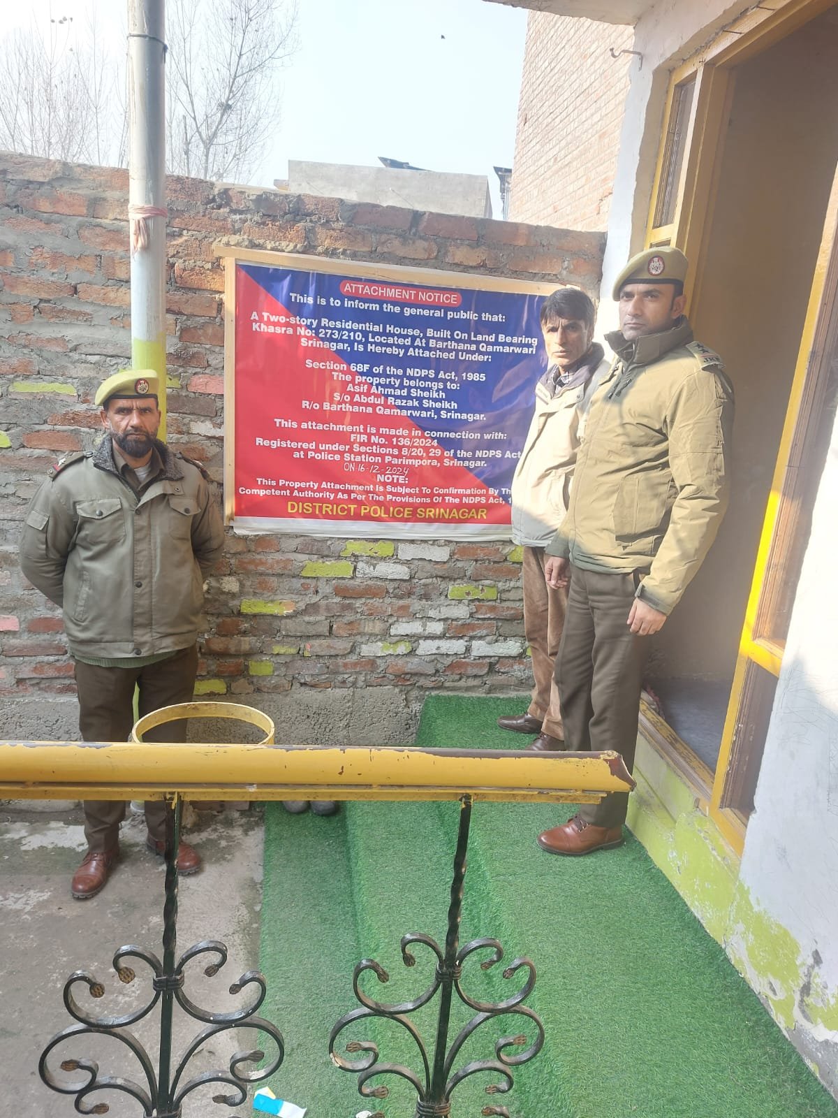 During the course of investigation, it came to fore that the accused person namely Asif Ahmad Sheikh had constructed a double-storeyed house at Babapora Barthana from the proceeds of illegal narcotics trade.