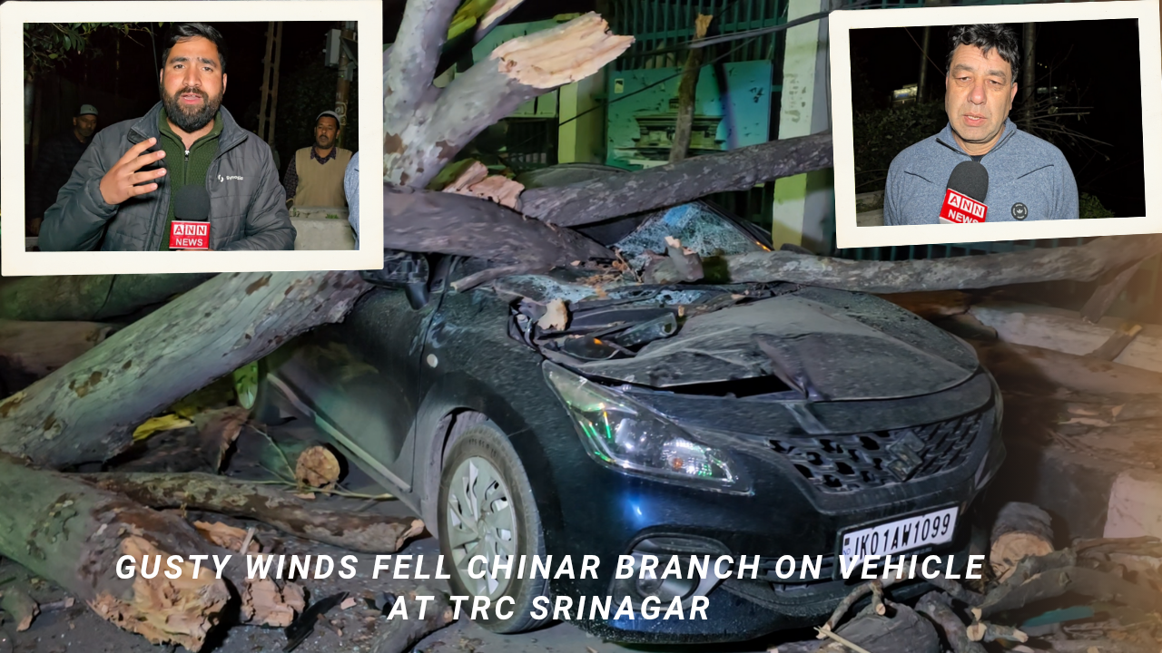 Reports reaching news agency JKNS said in Srinagar city, strong winds led to complete destruction of a vehicle near the Tourist Reception Centre (TRC) Srinagar.