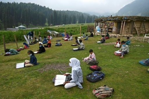 Srinagar: Sitting cross-legged and hunched over her textbooks in a lush meadow surrounded by mountains and pine trees, Tasleem Bashir can hardly contain her joy at being back at school.