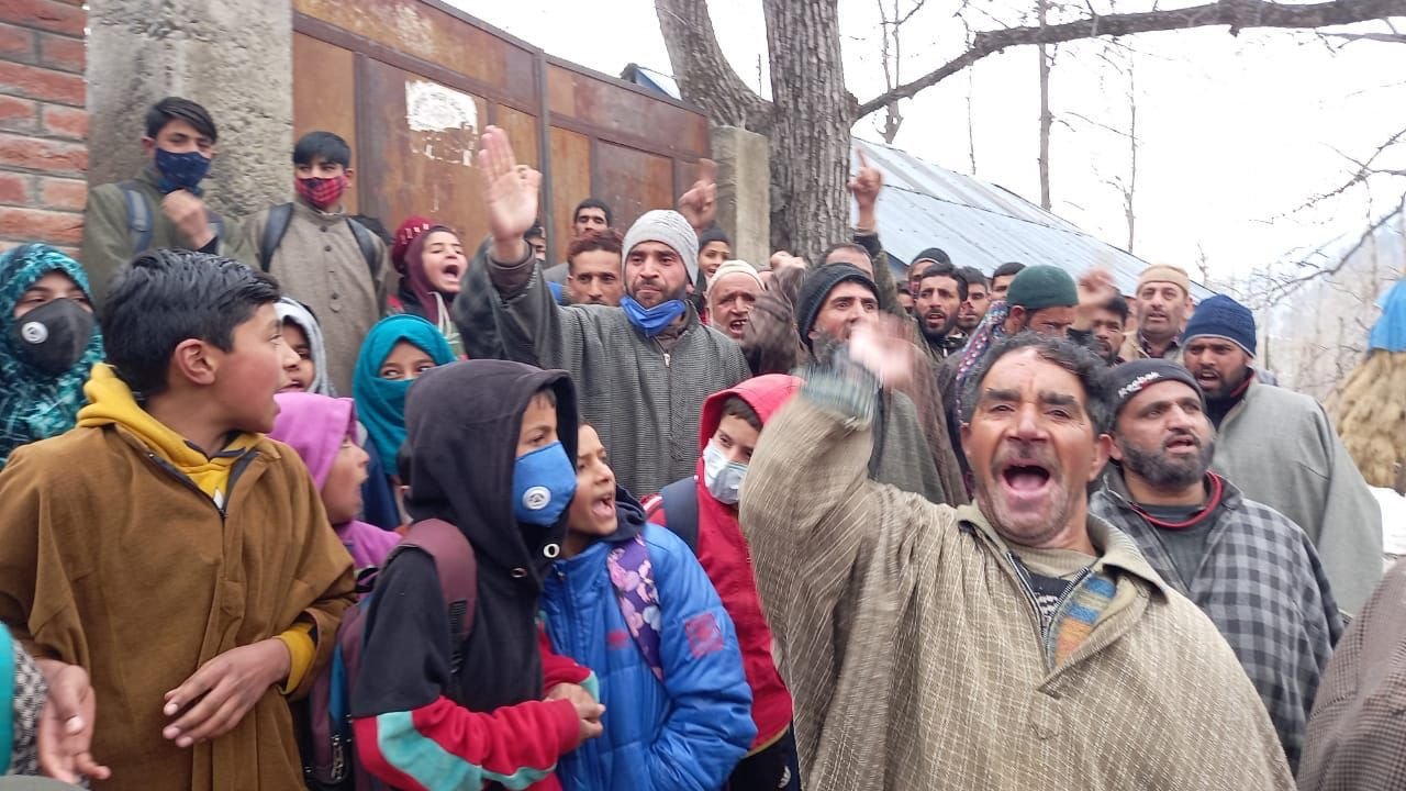 Reports reaching to the news agency—Kashmir News Observer (KNO) said that scores of students along with their parents assembled in the premises of Government High School Thaman Koot, staged the protest and sought the government to look into the matter and provide them proper teaching facility.
