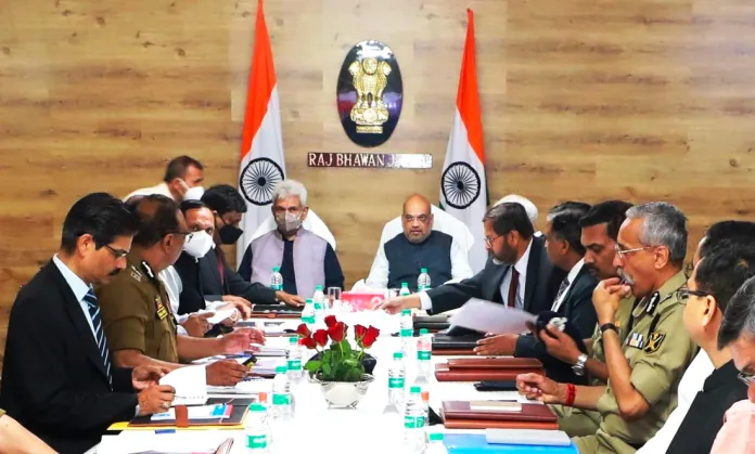 Srinagar, Oct 05 : Union Home Minister Amit Shah chaired a high level crucial security meeting in Srinagar and directed the security top brass to step up anti-militancy operations to make J&K “militancy free” so that people taste the real democracy and reap the benefits of peace.