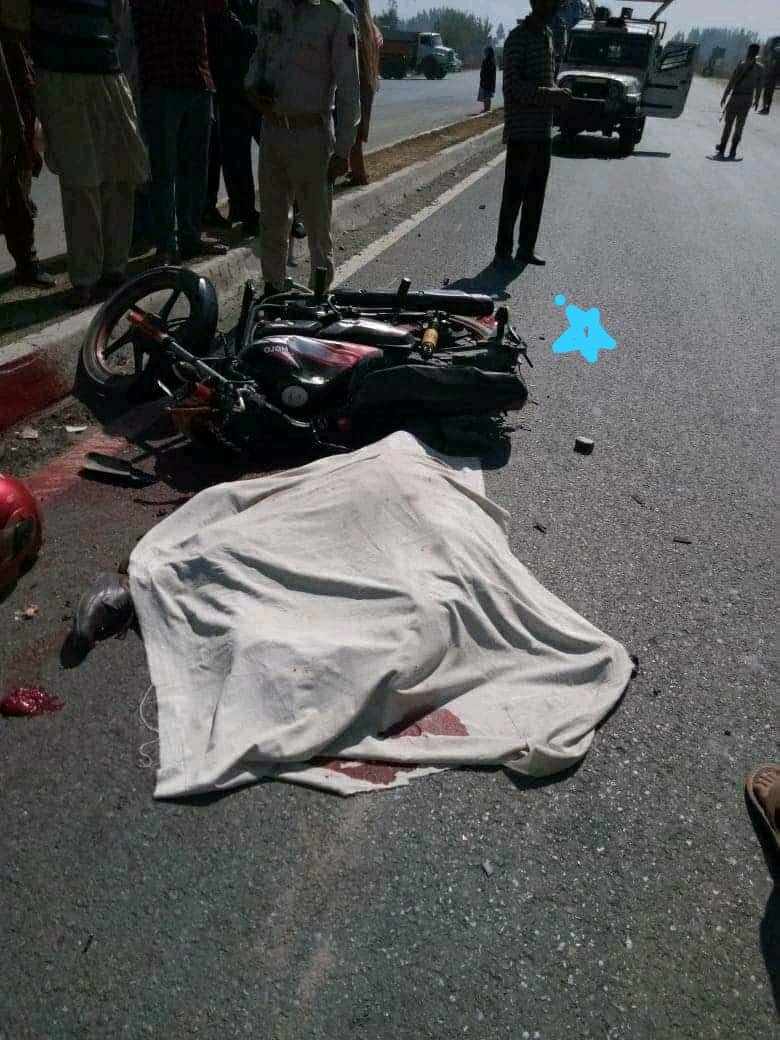 Officials told the news agency KNO that a 25-year-old youth identified as Ishfaq Ahmad Khanday, son of Ghulam Qadir Khanday of Sarandnoo was hit by a speedy truck (JK03C-7004) near Khudwani bypass Kulgam.