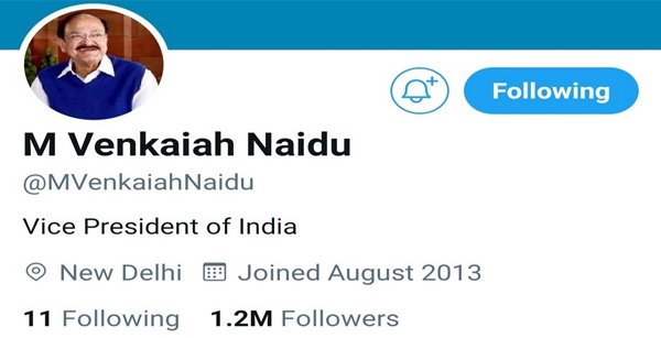“The personal account of Venkaiah Naidu was inactive for six months and the blue badge has gone,” said an official from Vice President.